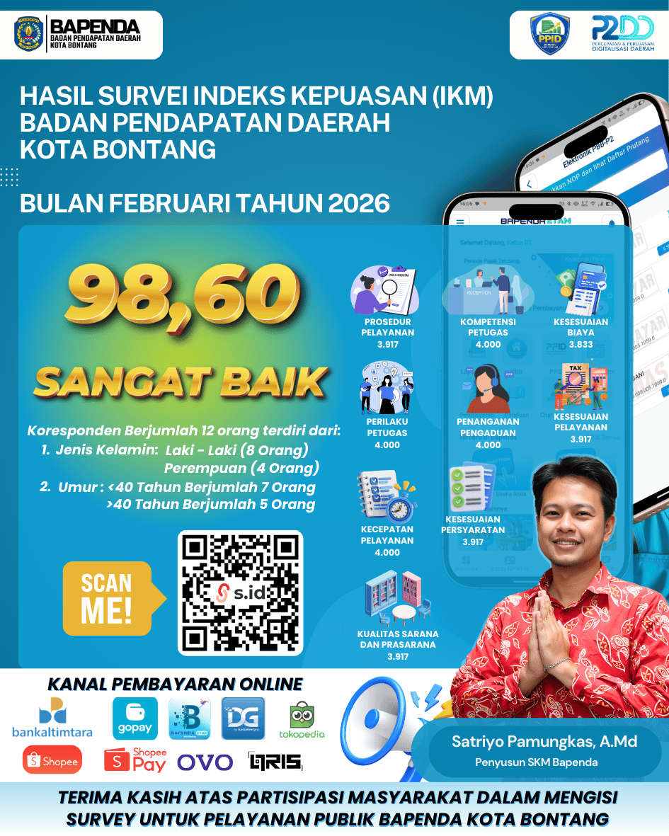 Kami hadir untuk mengelola dan mengoptimalkan pendapatan daerah, termasuk pajak dan retribusi, guna mendukung pembangunan serta pelayanan publik di Kota Bontangs